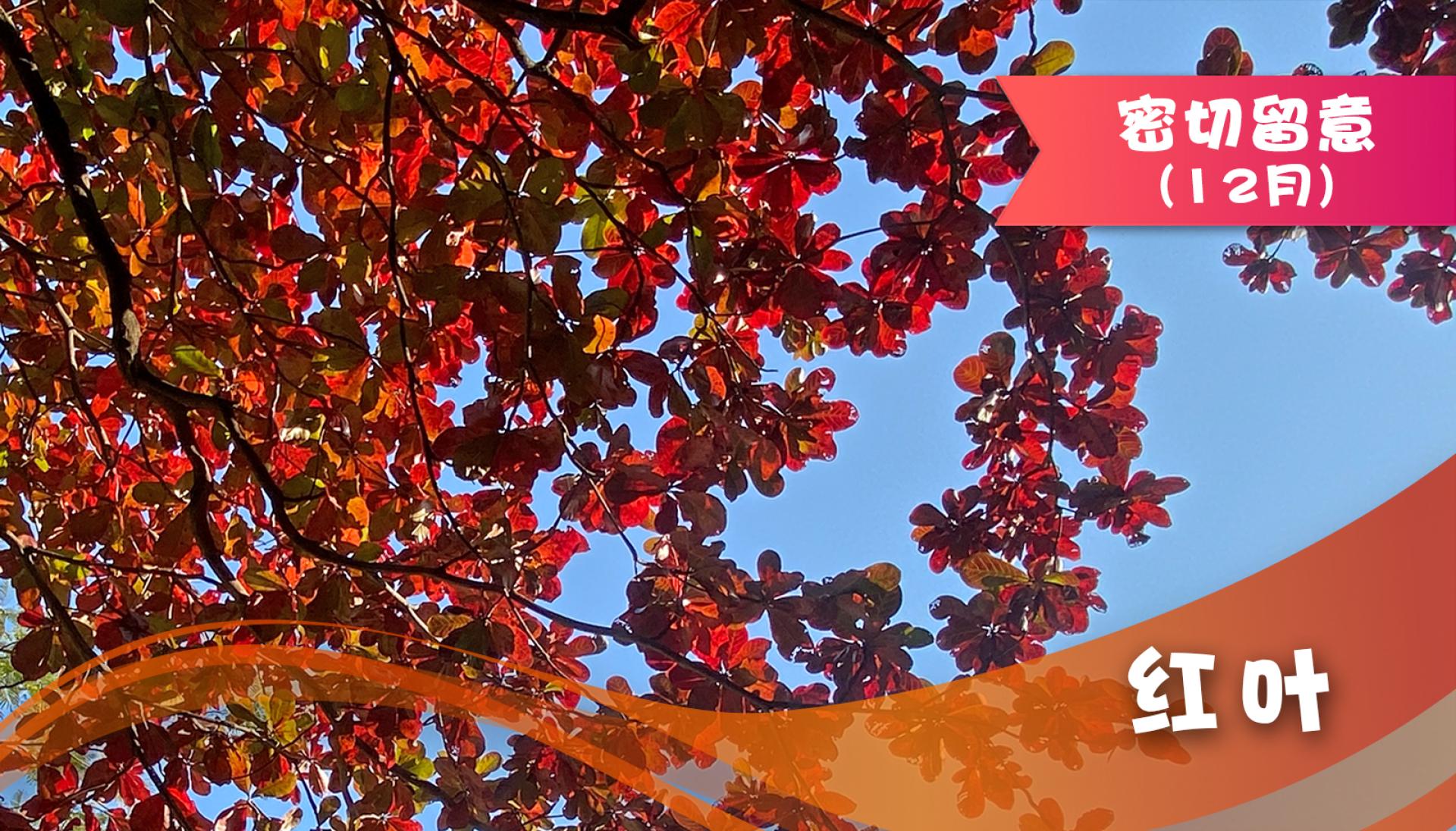 当树叶由春夏翠绿转成红色,就意味季节转变,秋冬日子已来临。树叶转色,原因是树叶除了有叶绿素,还有其他色素;两者会因应气候与环境变化而有不同反应。当温差愈大而时间愈长,树叶由绿变红的效果就更趋明显。香港虽地处亚热带,但公园亦种植了反映季节更替的树木,例如属金缕梅科的枫香(Liquidambar formosana),它是香港原生物种,树高可达30米;另外,属杉科的落羽杉(Taxodium distichum) 的叶片在落下前亦会转成橙褐色,它們的树高可达40米。