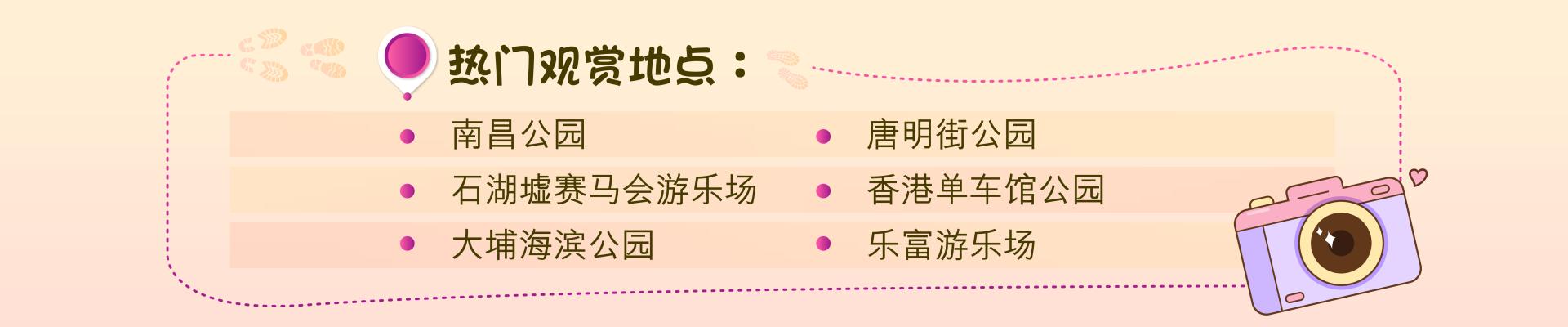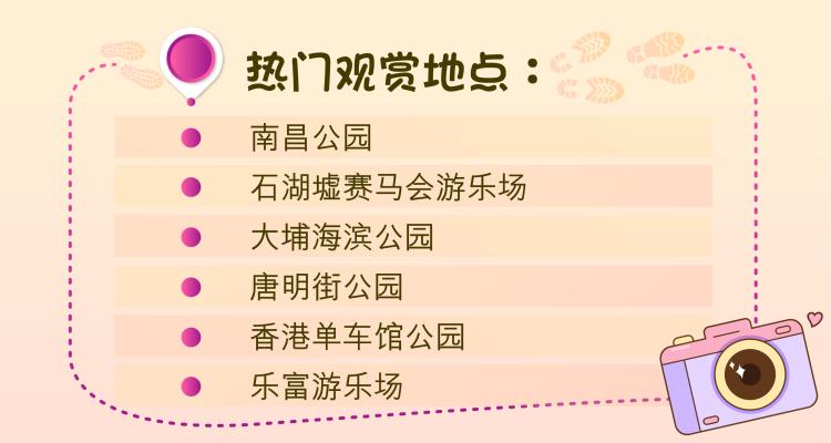 康乐及文化事务署(康文署)管理逾1600个公园和花园,遍布港九新界。这些公园绿树成荫,四时花木不绝,个别植物品种更特别受欢迎。每逢花季,便会引起赏花热潮,市民争相拍照。为让市民适时掌握赏花时机,现介绍几种备受欢迎植物品种的信息,当中包括:红叶、紫花风铃木、樱花、黄钟木、宫粉羊蹄甲、杜鹃、荷花、大花紫薇及洋紫荆。